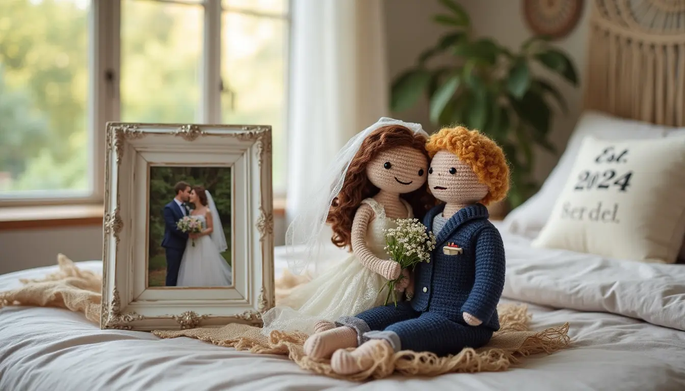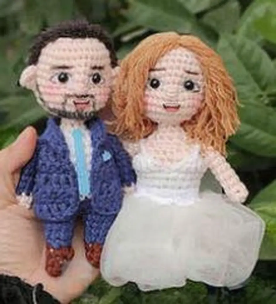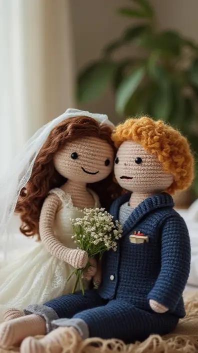 "For our first anniversary, I surprised my wife with custom crochet dolls of us in our wedding attire. When she saw them, her eyes filled with happy tears. Hand-stitched with love, they're now our most cherished keepsake."